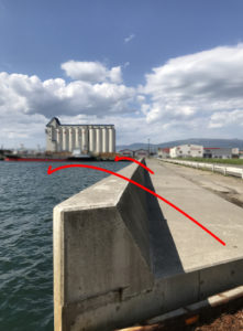中央埠頭と万台埠頭の間にある低い堤防。日中よりも夜釣りのポイントになる。