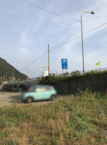 道路沿いの草わらの空きスペースに停める人が多いよ