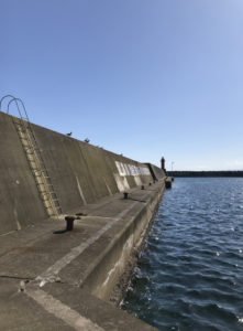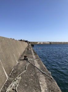東防波堤は、投げ釣りよりも、港内側に仕掛けをちょい投げor垂らして