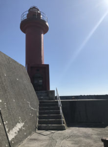 この漁港は先端の赤灯台のすぐ横に消波ブロック帯が積まれていて