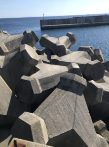 ここの消波ブロック帯のブロックは大きく、高めに積まれているけど