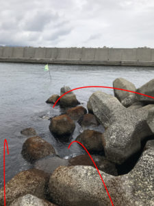 消波ブロック帯越しではなく、消波ブロック帯の上で投げ釣りする事になるよ