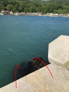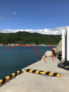 みなみに、この漁港は頻繁に漁船が行き来するから、漁船にロッドをもっていかれないように