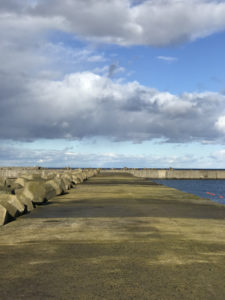 こちらは、真ん中付近までは、左右に消波ブロック帯が敷かれているけど