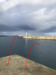 ただし、どちらの防砂堤の前もポイントである先端までは