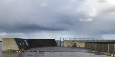 こちらは、南防砂堤と違って、入り口前が凸凹の山になっているんで